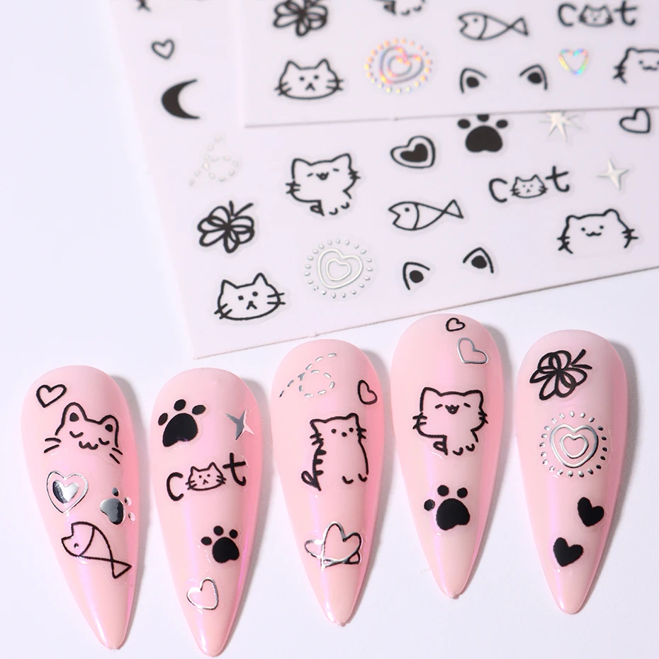 - Stil: Niedliche Katzen-Cartoon-Nagelsticker