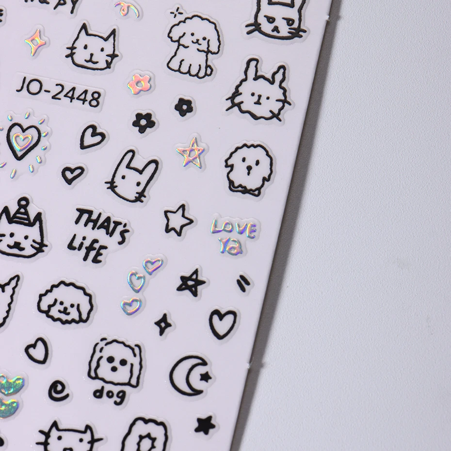Cartoon Kätzchen Nagelaufkleber – Holographische Herz- und Stern-Designs für eine bezaubernde Maniküre